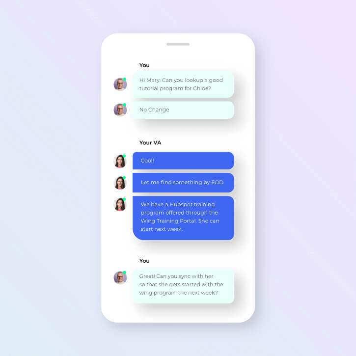 Ensure your assistant is on the same page with modern chat capabilities, centered around productivity, and perfected by our years of experience managing remote talent.